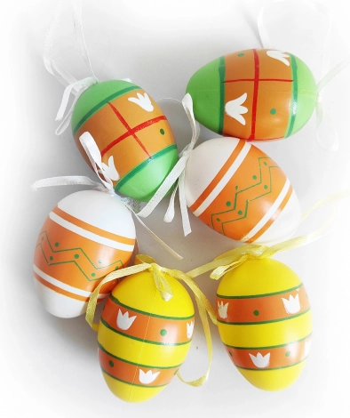 Disse dekorative plastæg er ideelle til enhver lejlighed, hvad enten det er påske eller anden festlig udsmykning. Hvert æg er omhyggeligt malet for at tilføje et kunstnerisk præg til dit hjem.
