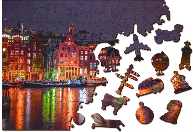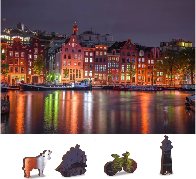 Hver brik er både en del af helheden, men har også sin egen unikke form, der repræsenterer bygningsværker, dyr eller genstande. Samlingen er samtidig mere udfordrende, hvilket bidrager til større underholdning og udfordring. Puslespillet er også dekoreret med en betagende scenografi af Amsterdam om natten, som er perfekt indgraveret i hver brik.