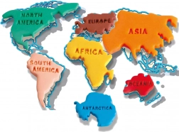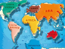 Læresæt med verdensdele og modellervoks kombinerer leg og læring. Børn lærer formerne og navnene på kontinenterne, mens de udvikler deres kreativitet.