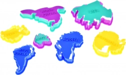 Sættet indeholder alt, hvad du behøver: modellervoks i fem farver, 7 forme af kontinenterne, 7 stempler med kontinenternes navne og en kagerulle. Rul modellervoksen ud i et tyndere lag og brug udstikkerne til at lave de valgte verdensdele.