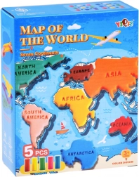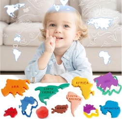 Dette kunstneriske sæt er ideelt til børn, der elsker kreative aktiviteter. Det udvikler finmotorik, fantasi og kreativitet. Sættet lader dig ikke kun skabe former af verdensdele, men også lære deres engelske navne og dermed udvide de geografiske kundskaber.