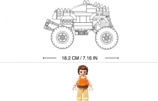 I pakken finder du byggedele, 1 figur, overskuelig vejledning og klistermærker. Pakkens mål er 38 × 28,5 × 6,7 cm. Byg, træk op og tag på eventyr i ethvert terræn!