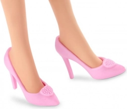 Pastelfarvede hæle med hjerter fuldender outfittet og fremhæver dukkens fashion-præg.