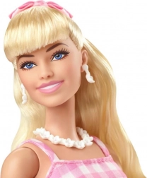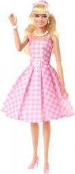 Denne BARBIE filmdukke skiller sig ud med tidløs stil og sans for detaljer. Hun har langt blond hår bundet med et lyserødt bånd, som matches af øreringe og halskæde med margueritter. Den lyserød-hvide ternede kjole i vintage-stil fremhæves af et plisseret skørt og bælte, mens lyserøde pumps giver outfittet ekstra flair.