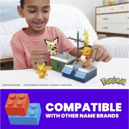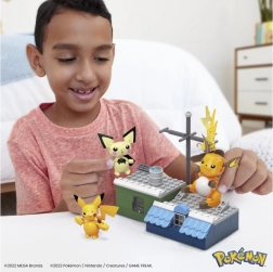 Sættet indeholder alt, hvad du behøver for at bygge Pikachu, Raichu og Pichu i deres naturlige miljø på taget.