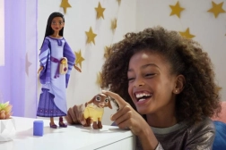 Oplev magien fra filmen Disney Wish med dukken Asha fra Rosas og et rigt sæt tilbehør til kreativ leg. Sættet indeholder en dukke i karakteristiske lilla kjole, de søde figurer Star og Valentino, en bog, en taske og et blødt halstørklæde. Valentino har en interaktiv funktion – når du trykker på hovedet, rækker han tunge! Ideelt til eventyrlige fortællinger, hårstyling og genopførelse af scener fra den populære film.