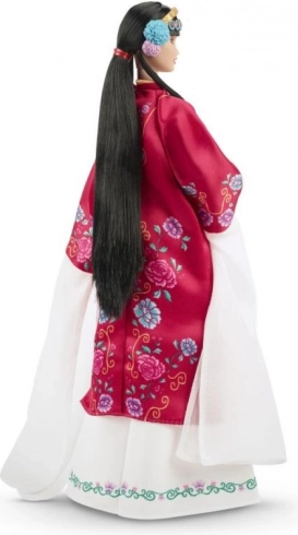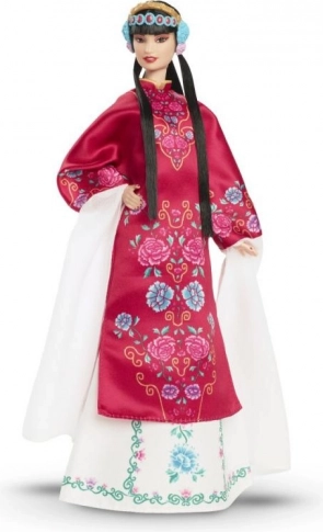 Denne enestående BARBIE-samlerdukke hylder Kinas rige kulturarv. Den strålende røde farve, der symboliserer held og velstand, møder fine blomsterdetaljer af pæonen – blomsten for velstand. Inspirationen fra Pekingoperaen ses i kjolen, hovedprydelsen og accessories, som virker festlige og raffinerede.