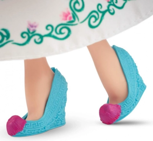 - Traditionel hovedprydelse, cyanfarvede sko med lyserøde frynser