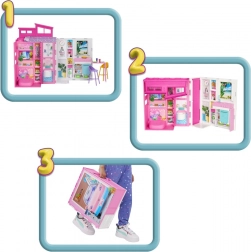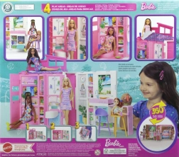 Dette farverige og let sammenklappelige BARBIE-hus forvandler hver dag til et eventyr. Børn vil elske de gennemtænkte detaljer som udtræksbordet i køkkenet, det hyggelige soveværelse på førstesal og hjørnet til filmhygge med venner.