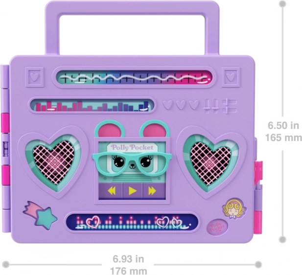 Dans, syng og opdag overraskelser med Polly Pocket-dukken i dette seje Disco Dance Fashion Reveal-sæt! Sjovet starter med lag-på-lag-udpakning, inklusive en lynlås, der afslører en boombox. Sættet folder sig ud til en skole-dansefest med DJ-station, ballonbue, skab og 16 legeelementer. Det er en fest fyldt med action med tre overraskelser, inklusive en opløselig papirpose med tilbehør indeni og en eksklusiv Friend Clip-hættetrøje med DJ-tema, der matcher den 3-tommer høje Polly Pocket-dukke gemt bag skabet! Børn kan lege eventyr på dansegulvet inde i eller uden for sættet, og takket være bærehåndtaget er det let at pakke sammen og tage med på farten. Det er en fantastisk gave til børn fra 4 år, især til dem der elsker musik, dans og overraskelser! Farver og dekorationer kan variere.