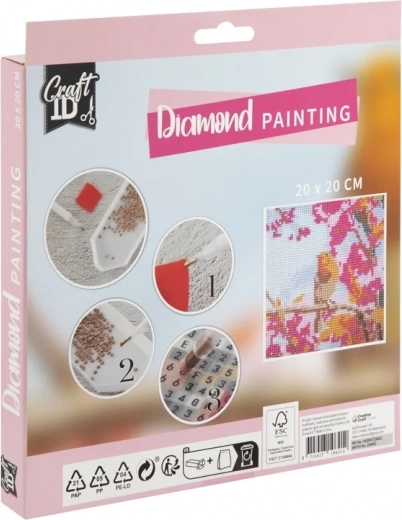Oplev afslappende kreativitet med diamantmaleri – sættet med fuglemotiv i størrelsen 20 × 20 cm giver timevis af underholdning og et smukt resultat. Med applikationspennen overfører du nemt farvede sten til det fortrykte lærred med selvklæbende lag. Det færdige billede kan indrammes og udstilles. Nemt at påføre, fine glitrende sten og øjeblikkelig afslapning for både børn og voksne.