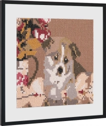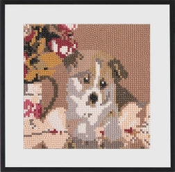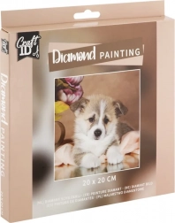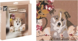 Diamantmaleri er en kreativ teknik, hvor du med en applikationspen påfører små sten på et fortrykt og selvklæbende lærred. Hver sten har sin plads ifølge legendens symboler, så arbejdet er intuitivt, beroligende og egner sig også til begyndere. Det færdige billede med motiv af en sød hvalp bliver en smuk dekoration i dit hjem.