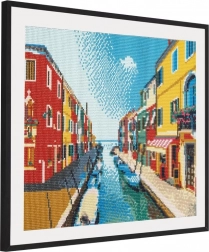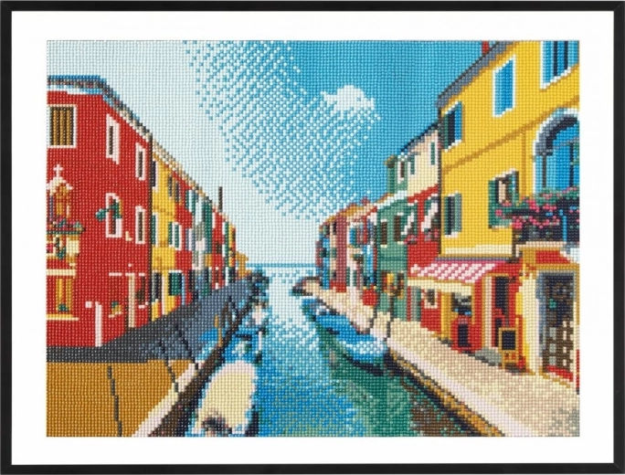 Diamantmaling er kreativ underholdning for alle – små farvede sten placeres trin for trin på det fortrykte lærred ved hjælp af en applikationspen. Motivet af den romantiske vandkanal kommer til sin ret i stenens glimt og forvandles til en original dekoration i dit hjem.