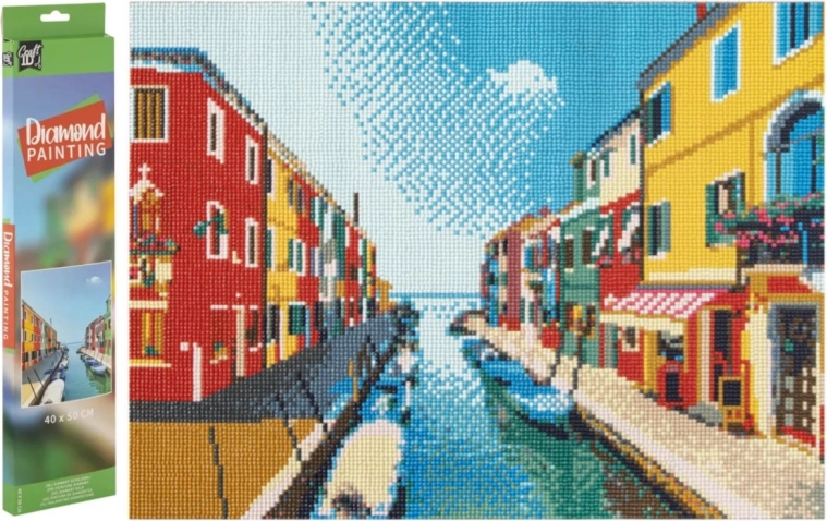 Diamantmaling GRAFIX med motiv af vandkanal 40×50 cm. Komplet sæt til afslapning og skabelse af et glitrende billede. Ramme er ikke inkluderet.