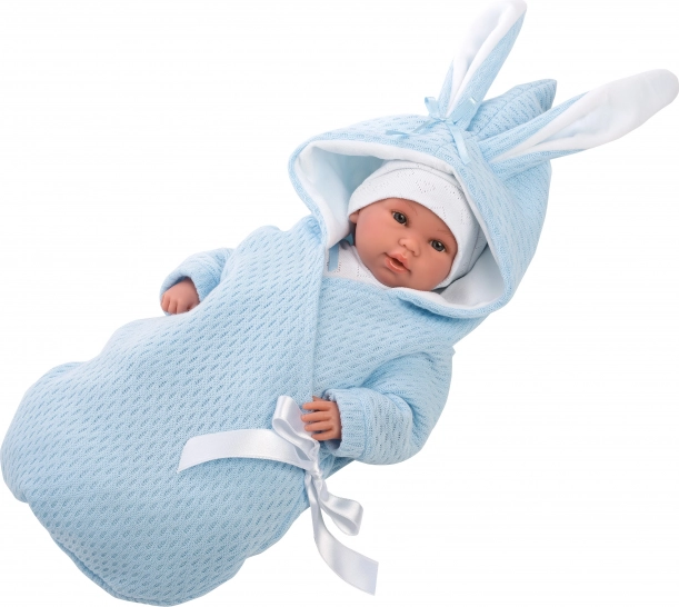 Stilfuldt 2-delt outfit til NEW BORN-dukker i størrelsen 35–36 cm fra LLORENS. Håndlavet i Spanien, indeholder en blød overall/hurtigsvøb med hætte med små ører og en matchende hue. Nemt at klæde på, blide materialer og yndigt design glæder ethvert barn. Velegnet fra 3 år.