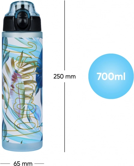 Stilfuld og sundhedsmæssigt sikker vandflaske af certificeret tritan til daglig hydrering. Den har kapacitet på 700 ml, låg der kan låses og er lækagesikkert med hurtig åbning samt håndstrop for behagelig bæring. Materialet er fri for BPA, PVC og ftalater, optager ikke lugte og er ideel til skole, arbejde, sport og udflugter.