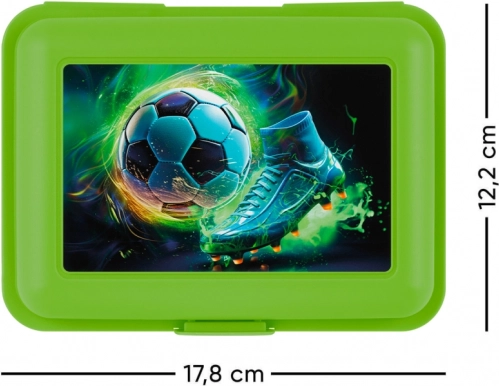 Hold din mad frisk og overskueligt organiseret. Denne grønne boks med attraktivt fodbolddesign er perfekt til både børn og voksne, der sætter pris på enkel brug og pålidelig lukning.