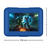 Vi præsenterer en innovativ madkasse til alle elskere af sci-fi og robotter. Denne blå plastik madkasse kombinerer stil med praktisk funktionalitet. Den er udstyret med en sikker lukning med én lås, som sikrer, at din mad forbliver sikkert inde. Med hjælp fra skillevæggene kan du nemt adskille forskellige typer retter for en ren og organiseret frokost.