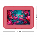Opdag den ideelle løsning til transport af snacks, der kombinerer design og funktionalitet. Denne madkasse er med sin lyserøde farve og flamingomotiv et frisk pust i hverdagen. Den er lavet af solid plast, hvilket sikrer lang holdbarhed.