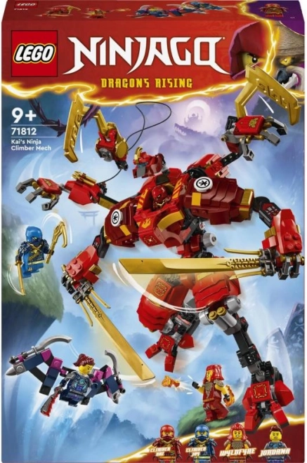 Oplev action med byggesættet LEGO NINJAGO Kais klatrende mech (71812). En fed rød mech med bevægelige led, to store katanasværd og klatrekroge til leg og udstilling suppleres af 4 minifigurer – Kai klatrer, Jay klatrer, Wyldfyre og Jordana med svævefly. En fantastisk gave til børn fra 9 år, der elsker selvstændig, kreativ og actionfyldt leg.