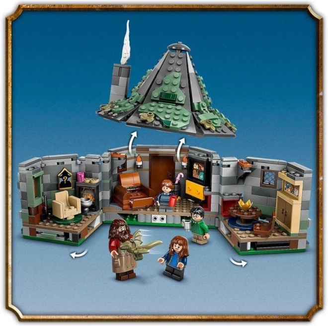 Sættet indeholder fem ikoniske minifigurer – Harry Potter, Hermione Granger, Ron Weasley, Draco Malfoy og Rubeus Hagrid – samt figurerne af drageungen Norbert og Klofer. Der medfølger også 2 af 14 samlerportrætter fra HOGWARTS, som kan hænges op i interiøret.