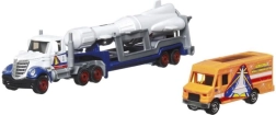 Tag på eventyr med MATCHBOX-konvojen: trækker med sættevogn og personbil inspirerer til historier fra byens gader, byggepladser og motorveje. Takket være den aftagelige kabine og de gennemtænkte proportioner er legen naturlig, alsidig og sjov.