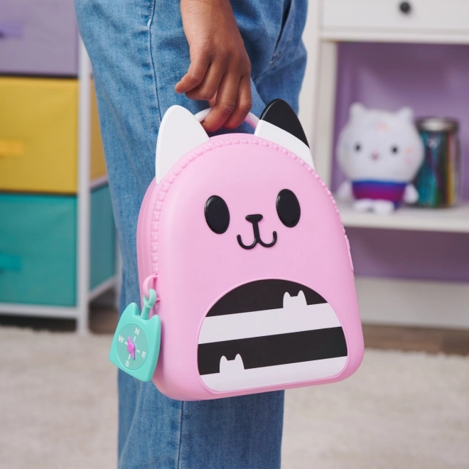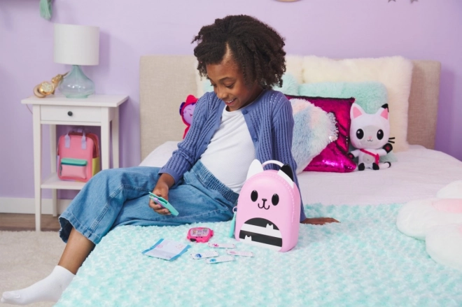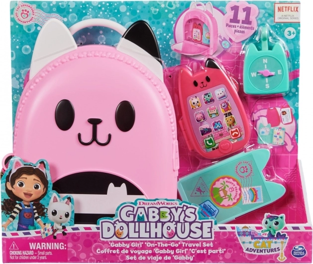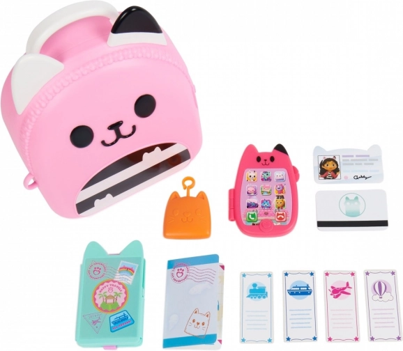 Gør dig klar til spændende eventyr med rejsesættet Rygsæk. Dette 11-delte sæt er uundværligt udstyr til fans af DreamWorks-serien Gabis Kattehus, som elsker rolleleg. Det indeholder en legetøjsmobil, der kan foldes og rummer en kattenøglering, Gabis id-kort, et kompasvedhæng, en rejsepunge, der passer til legetøjspas og billetter, samt en super sød katteformet legetøjsæske med særlige holdere, der kan rumme alle de fantastiske legetøj fra børnehaven. Hvert stykke i sættet er fremstillet med autentisk design og stil, så det ligner præcis Gabis rejseudstyr fra serien. Børn vil elske at løbe rundt derhjemme og lade som om, de rejser verden rundt ligesom Gabi. For endnu flere spændende eventyr kan du kigge efter kameraet, som også passer i beholderen, så I kan have det sjovt med at tage billeder på rejsen (kamera sælges separat). For den sidste overraskelse kan du scanne QR-koden på emballagen til rejsesættet og få adgang til den gratis app Gabis Kattehus (tilgængelig til iOS og Android). Plysdyr, dukker, figurer og legesæt fra Gabis Kattehus er ideelle legetøj til piger og drenge, der elsker at bruge deres fantasi og skabe deres egen dukkehussverden, så gør jer klar til endeløse eventyr med Gabis rejsesæt.