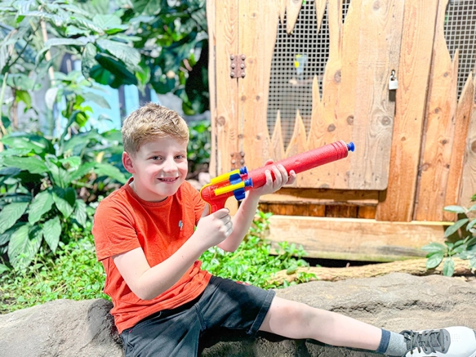 Den lette konstruktion og ergonomiske greb passer til børnehænder, mens rækkevidden på op til 8 m giver masser af sjov i haven, på legepladsen og på ferien. De markante farver stimulerer fantasien og øger synligheden af legetøjet under leg.