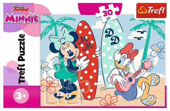 Saml dette søde billede af den populære Disney-figur Minnie. Puslespillet indeholder 30 brikker, hvilket er ideelt for yngre børn. Størrelsen på det samlede puslespil er cirka 27 x 20 cm, hvilket gør det nemt at håndtere og opbevare.