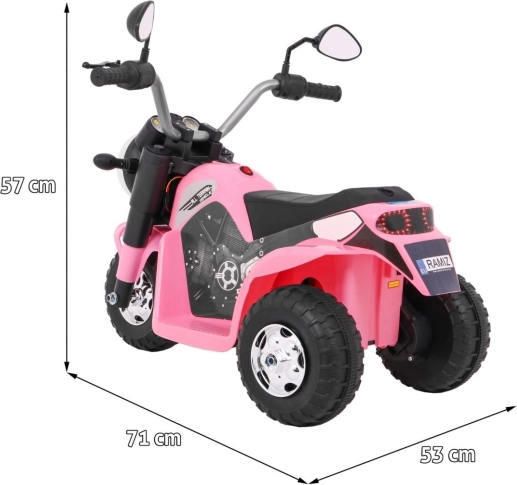 MiniBike er en let og stabil elektrisk motorcykel til børn med holdbare plastikhjul og et komfortabelt sæde i økolæder. Nem betjening suppleres af start med motorlyde og LED-belysning for bedre synlighed.