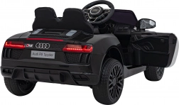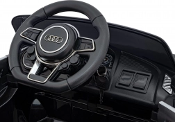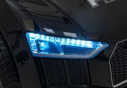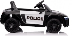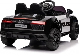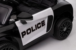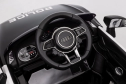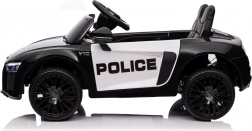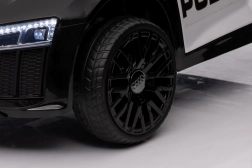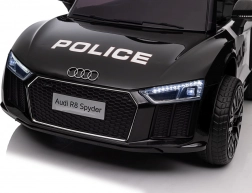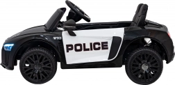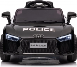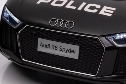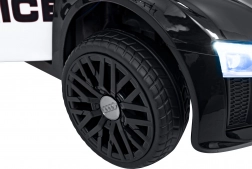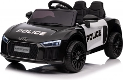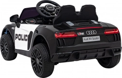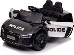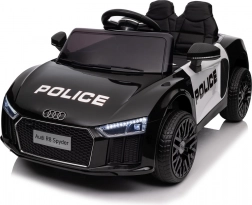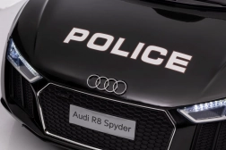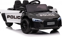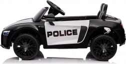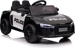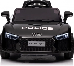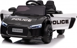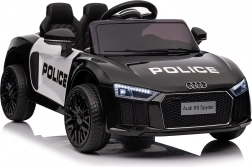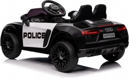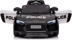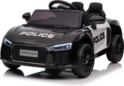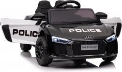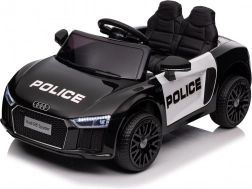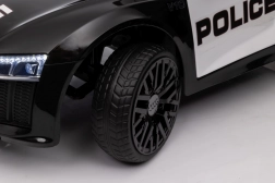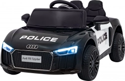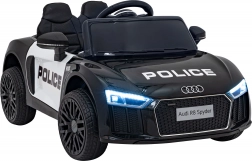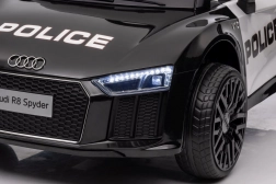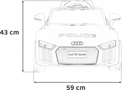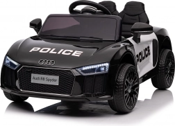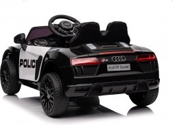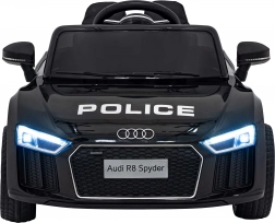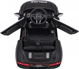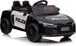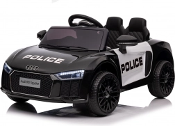 Den stilfulde elektriske politibil AUDI R8 vil glæde små chauffører med et realistisk look og fantastisk udstyr. Den tilbyder 2× 35 W motorer, dobbelt batteri 2× 6 V/4,5 Ah, 2.4G fjernbetjening med 3 hastigheder og sikkerheds-STOP, bløde EVA-hjul 19 × 7 cm med affjedring for og bag, blød start, LED-lys og et sjovt audio-panel USB/SD/MP3/AUX. Komforten sikres af sæde i øko-læder med seler og åbningsbare døre.