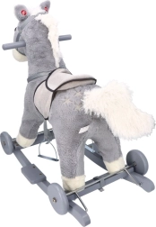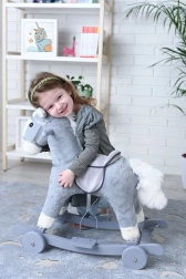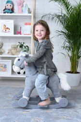 Nyd klassisk gyngning og små køreture rundt i rummet. Gyngehesten 2-i-1 med hjul kombinerer en gennemprøvet trækonstruktion med blød plys, en behagelig saddel og sikre håndtag. Det grå design passer ind i ethvert børneværelse og understøtter fantasi og udvikling af balance.