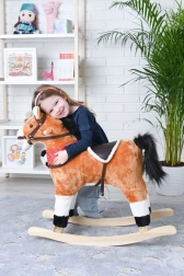 Den interaktive gyngehest i plys kombinerer et blødt, behageligt materiale med en robust konstruktion for sikker og komfortabel gyngen derhjemme. Den enkle styring af lydene understøtter fantasifuld leg og motiverer børn naturligt til bevægelse.
