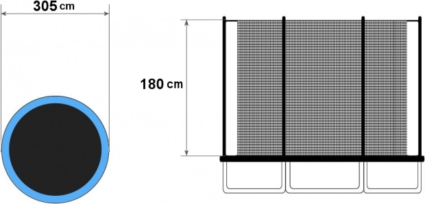 Dette indvendige beskyttelsesnet er kompatibelt med de fleste trampoliner med en diameter på 305 cm (10 ft) og er designet til 6 lodrette stolper (3 dobbelte ben). Universel fastgørelse gør det muligt at bruge det med en stor del af modellerne på markedet uanset producent. Indgangen er udstyret med en tovejs lynlås med spænde for endnu højere sikkerhed for både børn og voksne.