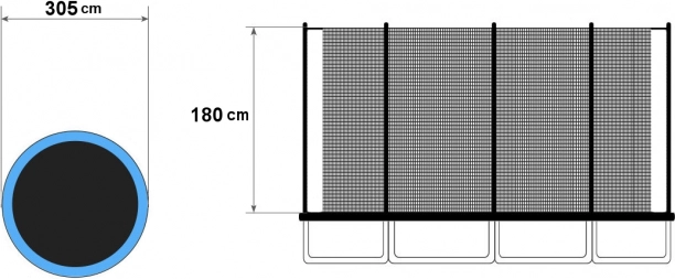 Takket være universal montering er nettet kompatibelt med trampoliner fra forskellige producenter med 4 dobbelte ben (8 stolper). Højden på 180 cm forhindrer effektivt at man falder ud fra hoppefladen, og den vandafvisende udførelse sikrer lang holdbarhed ved udendørs brug.