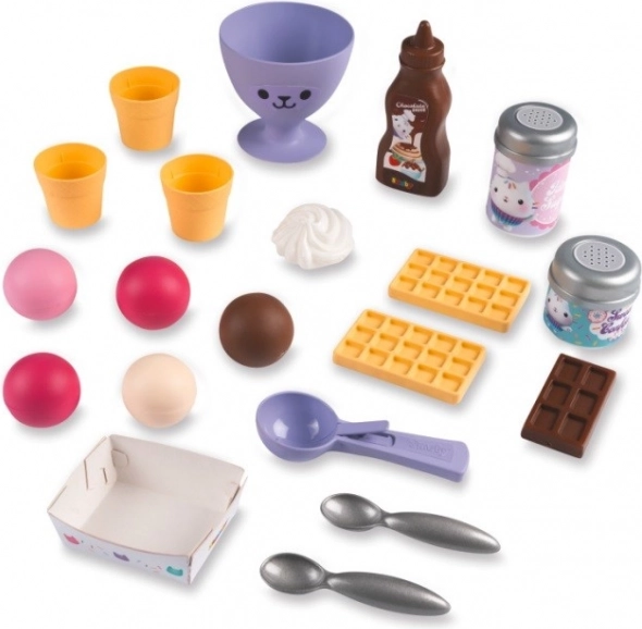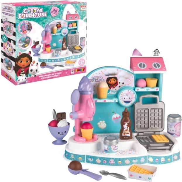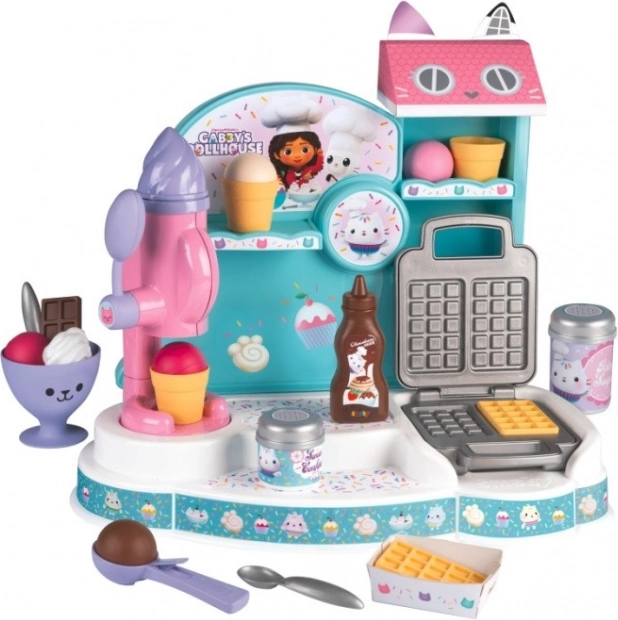 Opdag det legesyge køkkensæt GABBY'S DOLLHOUSE Isbar til børn fra 3 år. Det byder på rigt tilbehør til at lave is og desserter og udvikler kreativitet, finmotorik og rolleleg. Takket være holdbar plast er det sikkert og nemt at rengøre, de kompakte mål gør det let at opbevare, og det kræver ingen batterier.