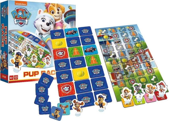 Slut dig til de populære hvalpe fra PAW PATROL og begiv dig ud på et løb fyldt med hukommelsesudfordringer. Hvert korrekt fundet par bringer dig tættere på sejren – hvem kommer først i mål? Spillet er ideelt til familieaftener og udvikler hukommelse, kon-centration og taktisk tænkning.
