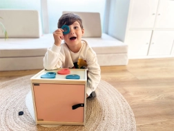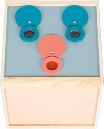 Denne moderne træsansende og taktile boks er designet til at stimulere dit barns sanser. Med to sideåbninger og øverste klaplåg kan børnene udforske på flere måder – gennem berøring, syn, hørelse og lugt. Boksen er fantastisk til udvikling af motoriske færdigheder og er også velegnet til ergoterapeutiske formål.