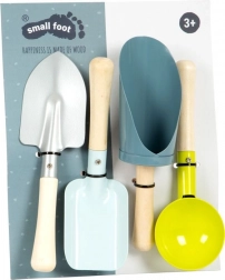 Small Foot børneskovlesættet indeholder alt, hvad små bygmestre og gartnere behøver: en håndskovl, en øseskovl, en fejebakke og en kulskovl. De robuste metalhoveder og de glatte træhåndtag sikrer lang holdbarhed og et behageligt greb selv ved længere leg.