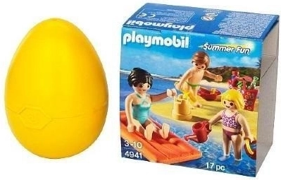 Opdag det legesyge PLAYMOBIL-æg, som gemmer på et sommersæt med strandscene – mor med børn nyder vandet, en luftmadras og at bygge sandslotte. Ægget fungerer samtidig som en sparebøsse, så børn kan spare deres småpenge, mens de leger. Ideelt til kreativ leg, fantasiudvikling og som et samlerstykke for børn fra 4 år.