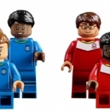 - Fodboldspænding – placer tribunerne ved siden af spillebordet, og fyld dem med fans, dvs. minifigurer, der ikke er i kamp. Sættet indeholder også to bolde, en pokal og flag