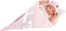 Dette stilfulde dukkesæt omfatter et behageligt outfit og en blød svøbepude, der ligner en vaffelis – et fremragende valg til at pakke dukken ind og give ro under legen. Takket være omhyggeligt håndværk fra Spanien udmærker sættet sig ved fine detaljer og behagelige materialer.