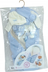 I pakken finder du et blødt sæt inklusive hue og tilbehør, som stilfuldt matcher hurtigsvøbet. Alt designet til NEW BORN-dukker i størrelsen 40–42 cm.