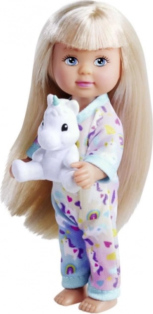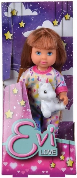 Den søde dukke Evi i blød pyjamas og med en plyset enhjørning vil glæde ethvert barn. Tre forskellige varianter, ideel til kreativ og fantasifuld leg. Dukkens højde 12 cm, egnet fra 3 år.