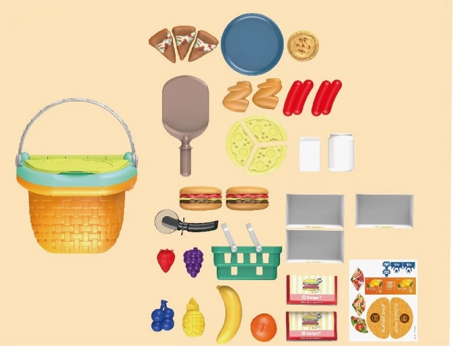 Legesæt picnic-kurv med burger: 32 dele fyldt med lækkerier til kreativ leg, udvikling af fantasi og sociale færdigheder. Fantastisk både hjemme og ude.