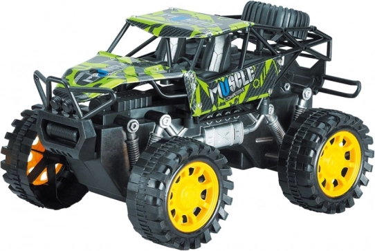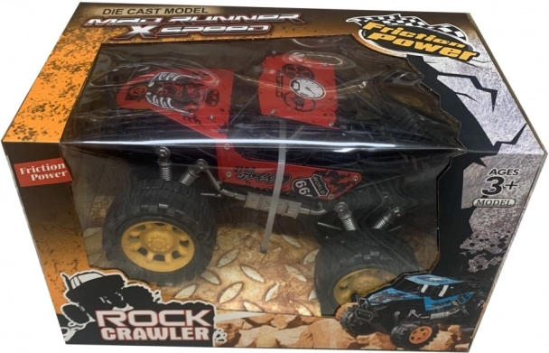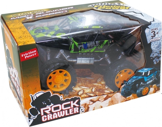 Denne holdbare rock crawler-model er skabt til eventyr. Takket være det friktionsdrevne system er det nok at trække bilen hen over underlaget og slippe – så kører den straks frem. De store terrænhjul og den forhøjede undervogn klarer forhindringer, tæpper og udendørs underlag.