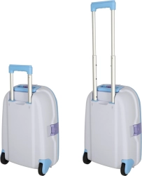 Det udtrækkelige håndtag, to hjul og en stabiliserende fod gør det nemt at føre kufferten uden at den vælter – ideel til små rejsende.