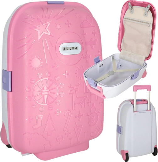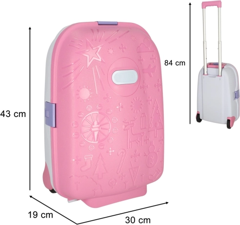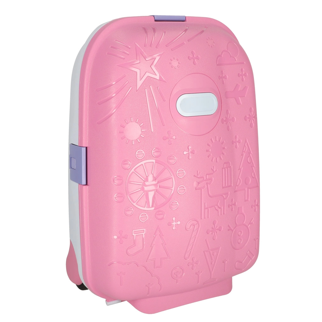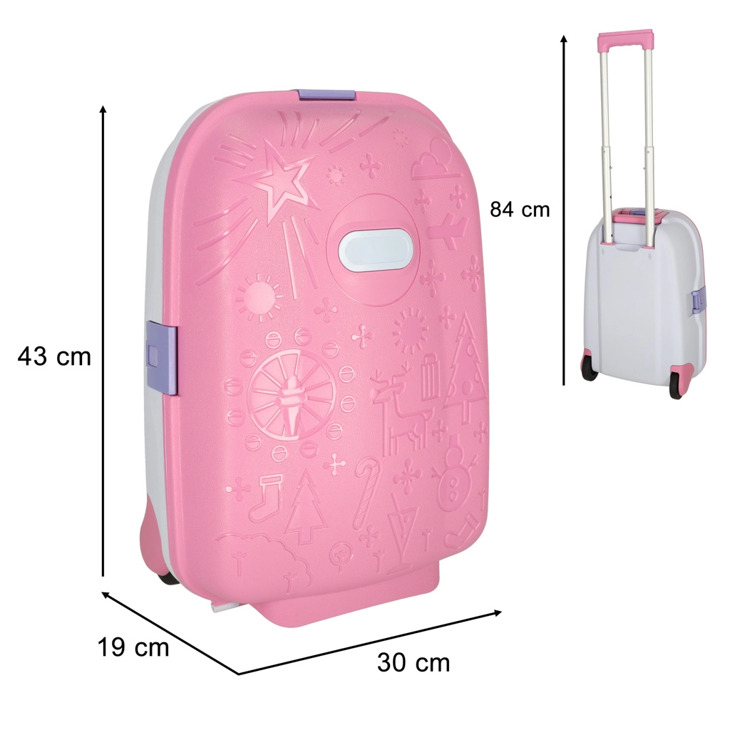 Børne-kabinekuffert på hjul med LED-hjul og plads til navn – Rosa