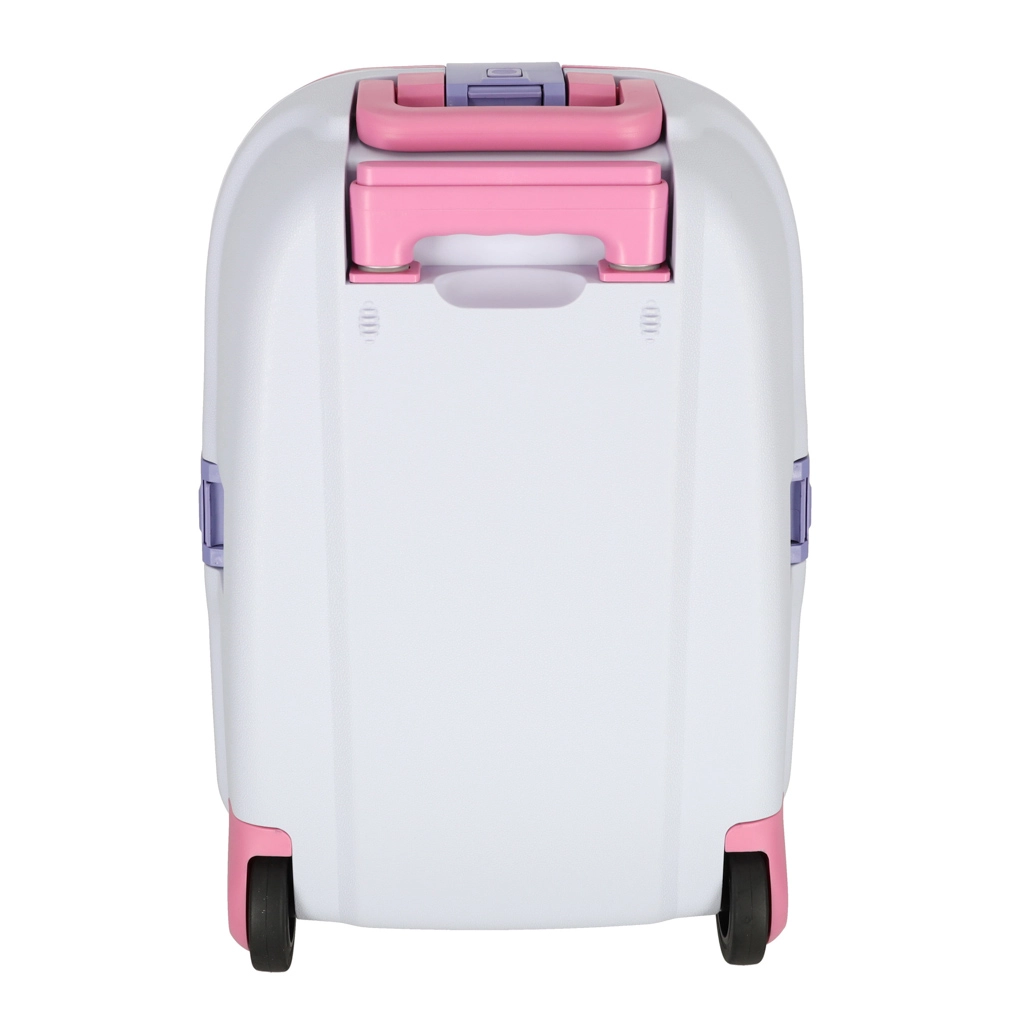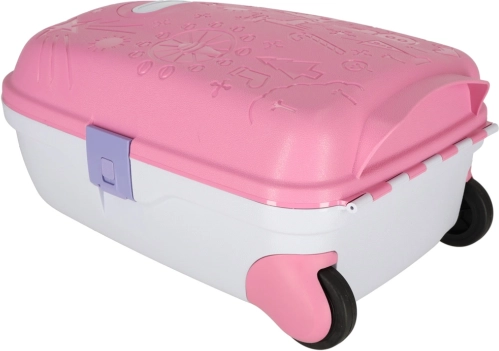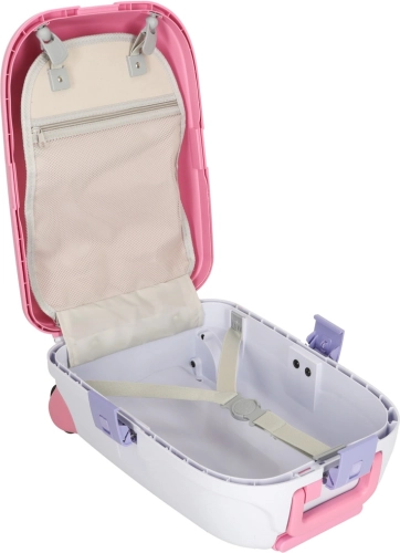 Denne børnekuffert er ideel som håndbagage til ferie, weekendture og besøg hos bedsteforældre. Den robuste plastkonstruktion tåler daglig brug og små eventyr. LED-hjulene lyser under bevægelse, hvilket både er sjovt og øger synligheden.
