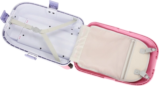 Indersiden er opdelt i to store rum med elastiske stropper og en netlomme for overskuelig organisering af tøj og småting. Udtrækshåndtaget og en stabiliserende fod gør håndteringen nem og forhindrer, at kufferten vælter.